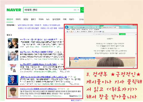 네이버에 '이대휘' 쳐본사람은 알겠지만 지금 대휘 연관검색어가 말도 아니야ㅠㅠ 대휘도 서치 많이 할테고 사람들도 '이대휘' 검색해볼텐데 좋은말만 나오게 해줘야지~ 한번씩만이라도 검색 부탁해! (수정할거있으면 알려줘!)