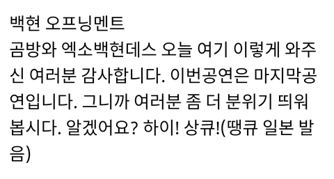 백현이 팬미 2회차 오프닝 멘트