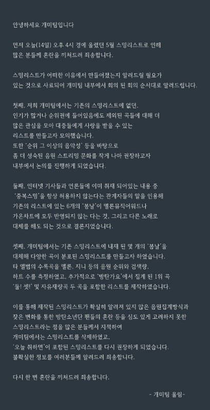 스밍리스트 해명올라왔옹
