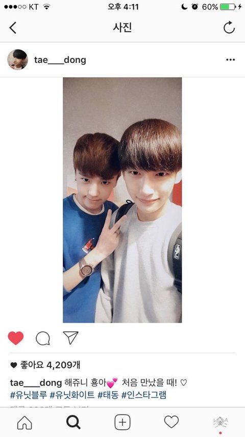 태동이의 회색 후드 사랑은 수많은 태동이의 셀카로부터 알 수 있음