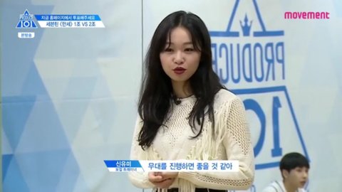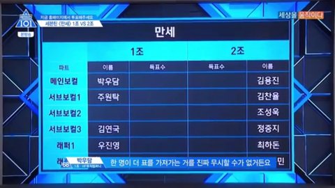 2차경연때 만세 조. 뒷조라 다음주 예고에 나옴 (옆에 보이는 빨간니트가 우진영 팀인 만세1조