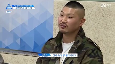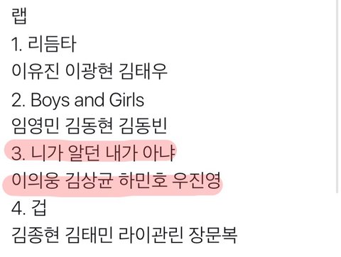 심지어 이런식으로 (사진은 보컬 포지션) 포지션 별로 앉아서 리액션 하는 장면도 랩 파트는 풀샷을 안보내줌 !