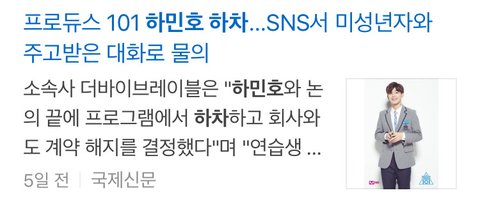 프듀 피디는 불미스러운 일로 하차하게 된 하민호 연습생을 '최대한 안보여지게끔' 편집을 하게 됨...........