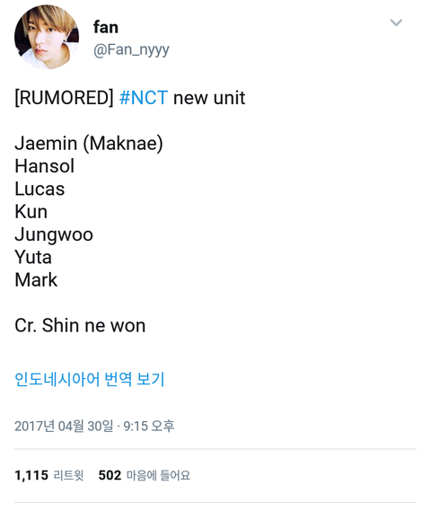 저번에 루머로 뜬 NCT U 라인업 진짜 맞는것같아