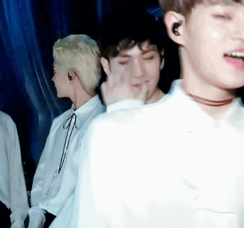 무대올라가기전 대휘에게 웃으며 화이팅하는 모습