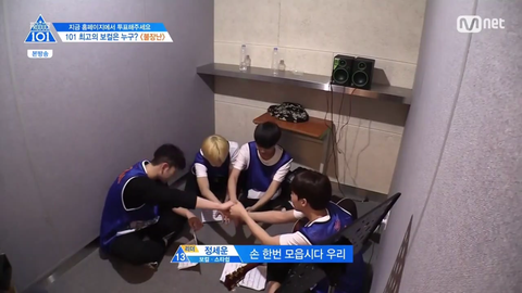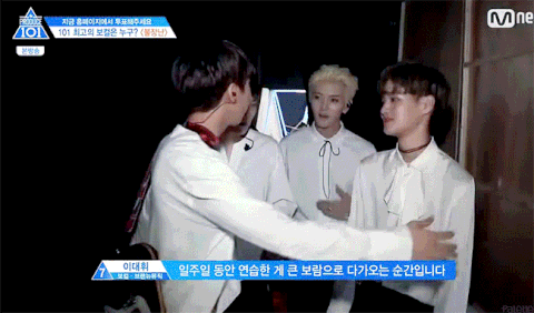 세운이가 화이팅하자고 하자마자 세운이 손을 꽉잡아주는 모습