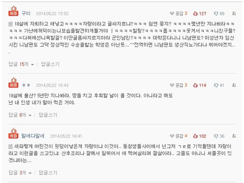 18살 출산후기라는 글을 봤는데 거기 악플 개오짐;