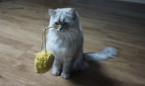새로운 고양이는 장난감에 관심을 두지만,