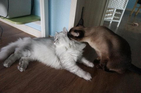 텃세는 무슨.. 처음 본 고양이가 신기해서 괜히 접근해봤다가