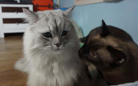 기 싸움엔 전혀 관심 없는 순둥순둥한 우니 맘을 알아준건지 샴도 둘째날부턴 우니 형아를 조금씩 따르더라고요.