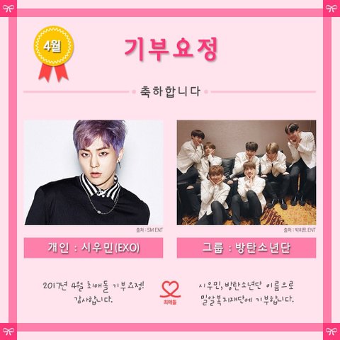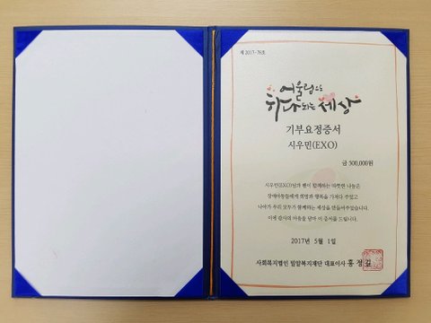민석이 4월달 기부요정 기부증서 올라왔어>.<
