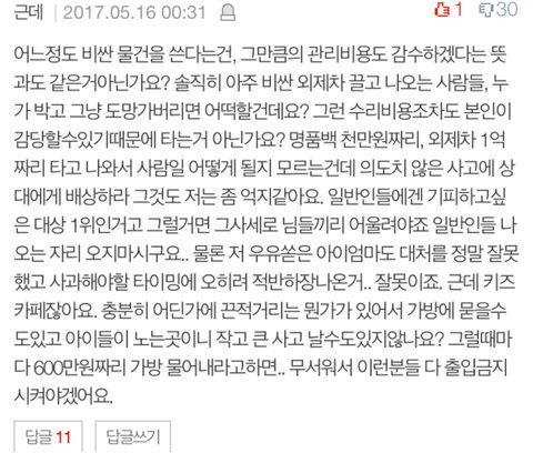 세탁비는 당연히 줘야되고 이거 원상복구 안된다고 하면 어쩌실건데요? 사과하는 사람치고는 상당히 떳떳하시네요?