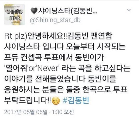 이후, 실은 이 팬 자기가 김동빈 부모의 가게에 가서 물었다고 밝혀졌습니다. 하지만 김동빈은 부르고 싶은 노래만 가족과 예기했고 가족들은 비밀을 해야 된 걸 모르고 팬에게 예기해줬습니다. 김동빈은 이 일에 대하서 몰랐습니다. 이 애의 문제가 아니구 왜 이런 방식으로 화제를 만드는지 모르겠네요.