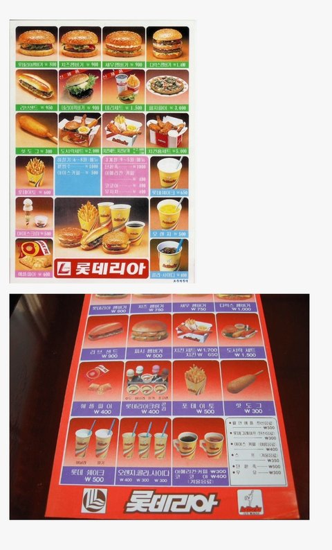 1990년대 초반 어느 페스트푸드점 매뉴판