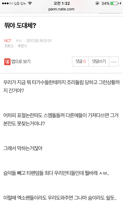 다른글에도 달았는데 지금 상황 : ㅂㅅ 뮤비나온거 엔도시 뮤비랑 비슷하다고 여기저기 말나옴. 엔도시측에서 엔터에 대충 글싸지름 > 조리돌림 당함 > 글 지움 > 우리찾는중. 여기 왜껴 우리가 ㅋㅋㅋㅋㅋ 언제 팬덤간 팬덤끼리 똥닦아줌? 가수가 선후배지 팬덤끼리는