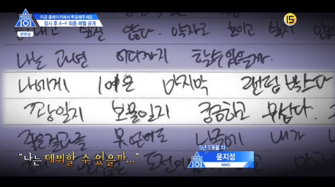 우리 지성이는 정말 착한 아이입니다. 무대가 끝나면 주변의 동생들의 눈물을 닦아주고, 자신의 이름이 지명 됐을 때는 눈물을 흘리기도 하고, 자신이 66표를 받은 것에도 감사할 줄 압니다