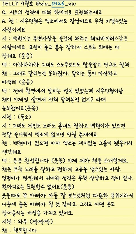 첸백시 젤리 인터뷰