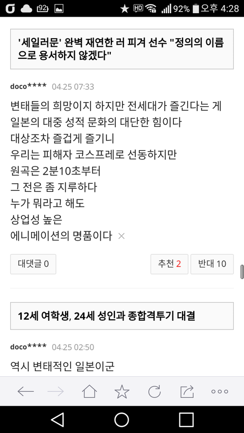 음란성으로 의심이 되는 외설 댓글은 단 하나도 없더구만 아주 작위작이게도 그게 바로 네이트 댓글들이