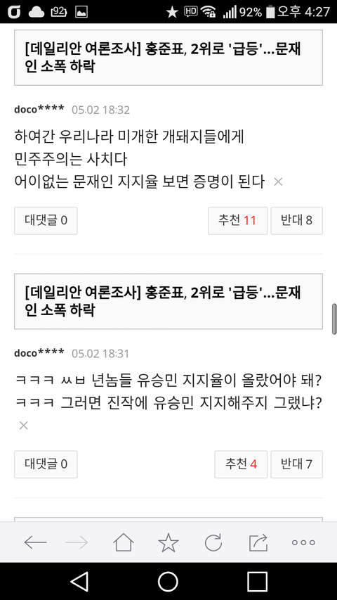 나 정지 시키고도 쓰레기 같은 댓글이 넘처나고