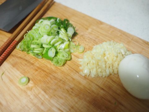 마늘하고 파는 잘게 다지고, 썰어줍니다.