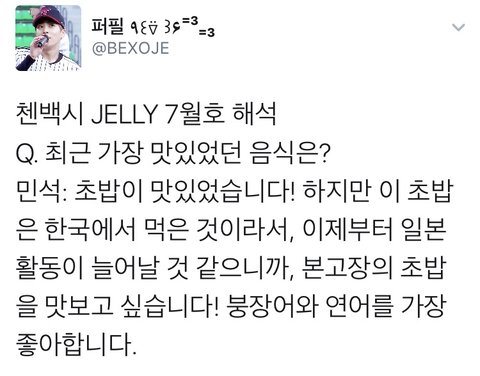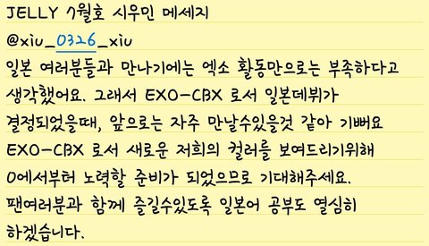 시우민 젤리인터뷰&메세지 번역(짹에서 긁어옴)
