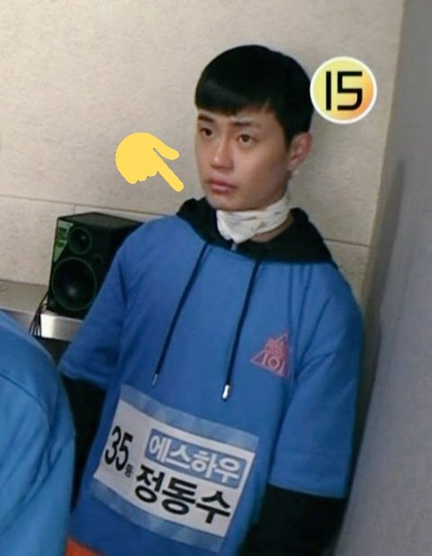 프듀에서 정동수가 목에 하고 있던 손수건= 아기들이 쓰는 아가방 손수건