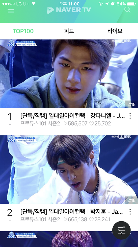 박지훈이 조회수 하트수 높은데 왜 강머녤1위...?