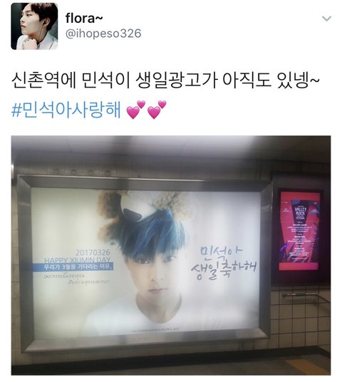 민석이 생일광고 더 보고싶으신 웅녀들은 신촌역으로 ㄱㄱ!!!!!