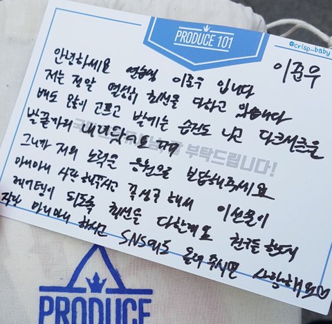 이준우연습생의 손편지 ㅠㅠㅠㅠㅠ