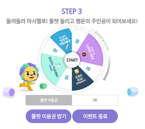 SNS 공유할 때마다 3회씩 룰렛 이용권을 주는데요,최대 9회까지 참여할 수 있다는 점..! 여행상품권, 기프티콘, 백화점상품권 등탐나는 경품들이 가득가득..