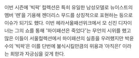 작년 디자이너 박윤수의 빅팍 무대에 올랐을때 당시