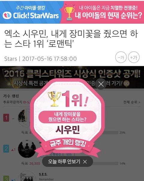 시우민 내게 장미꽃을 줬으면 하는 스타 1위