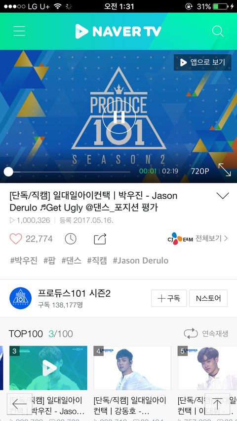 박우진 조회수 100만임