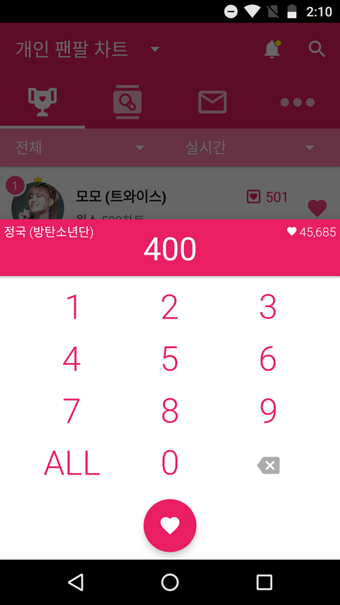 정국 팬팔 투표 뷔1등, 스밍 인증