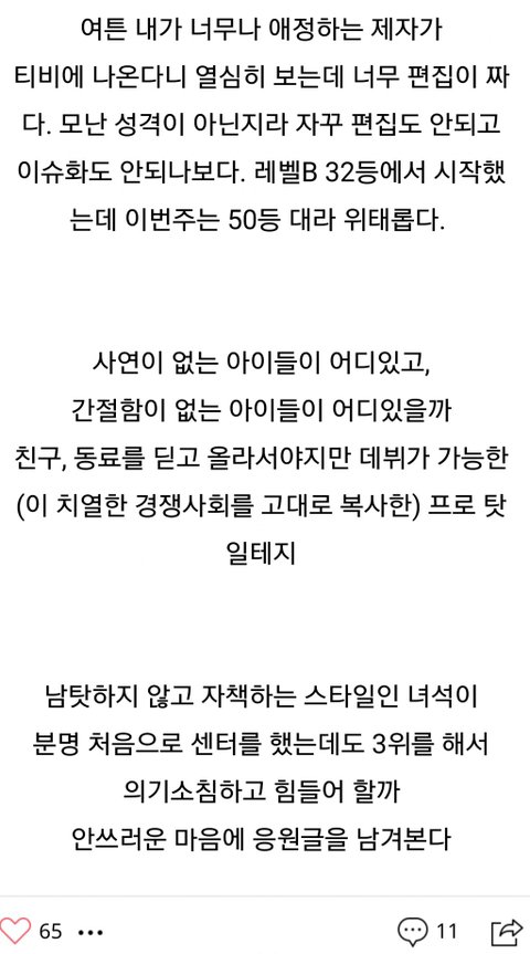 출연중인 모든 연습생들에게도 보여주고 싶은 글이라 올려요.