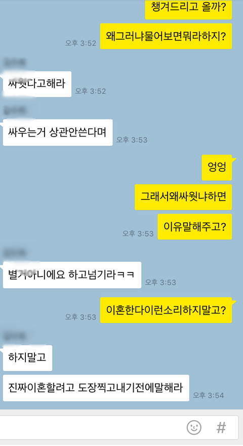아기앞에서 소리지르고 그만해라해도 자기할말은끝까지해야하고 자기중심적인인간이랑 더이상못살겠어서 별거중이였어요 .