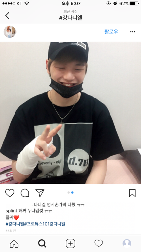 강다니엘 다침..