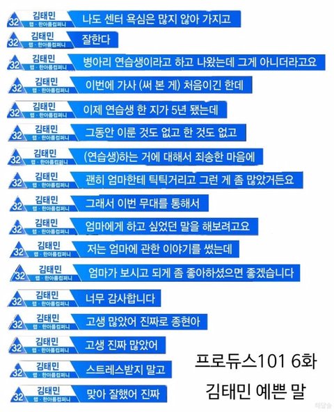 분량 1도 없었지만 김태민 보는 낙에 꾸준히 프듀도 챙겨봤는데.. 정말 너무 마음이 아프다ㅠㅠ 수술해야하는 정도로 아팠을텐데.. 프듀에서는 하차해도 언제나 응원하는 팬들이있다는거 알아줬음좋겠다.. 김태민 화이팅!!