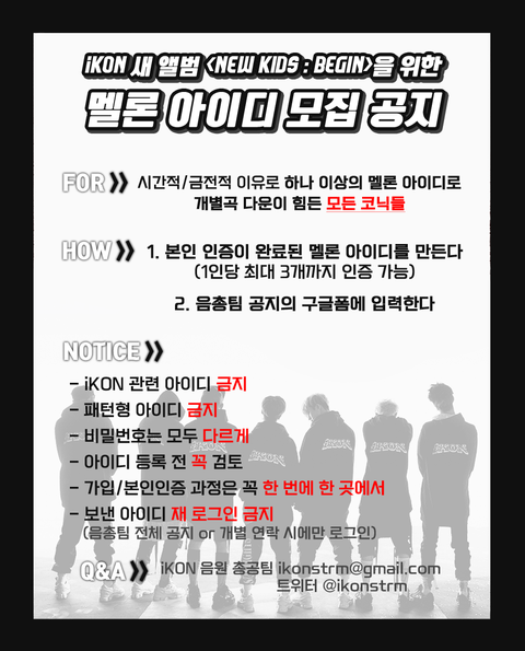위 링크 타고 들어가면 ㅁㄹ아이디 모집폼, 방법도 있고고 다른글에 음원모금 계좌도 있으니까 많이 참여하자