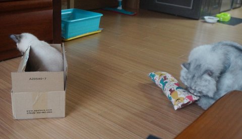 울 집 두냥이들도 못지 않은 상자 덕후예요.