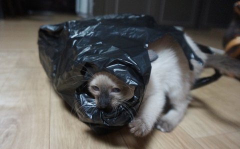 원래 고양이가 상자나 비닐처럼 숨기 좋거나 좁은 곳을 좋아하는 건