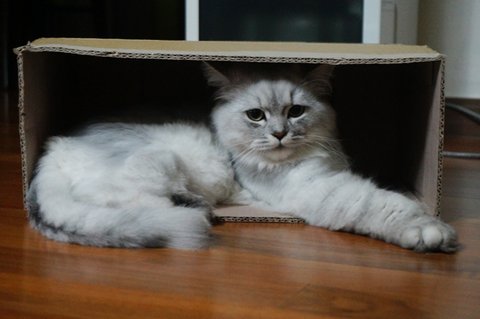 작은 상자에 시무룩해진 것 같아 다음 날 큰 박스를 새로 장만해줬어요ㅋㅋ