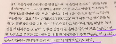저 부분 너무 감덩적이야..ㅠㅠㅠㅠㅠㅠ 팬 이야기를 멈추지 않았대...