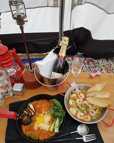 혼자(부속 두마리) 떠난 솔캠에서 나에게 주는 상! 밥상!