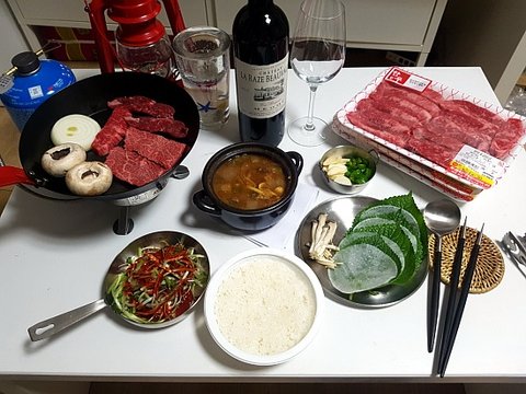 비와서 철수하고 지쳐 집에와서 먹은 소고기 'ㅡ'!!