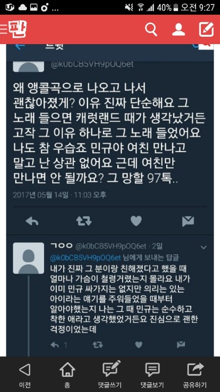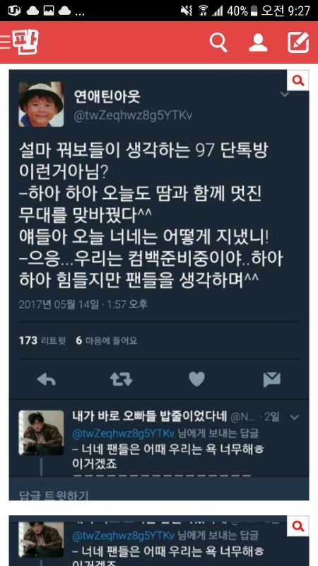 ㅇㄱㄹ 혼자서 댓글 자아분열 중이고 저런 루머 짹가면 한 가수당 몇 개는 꼭 있는 흔한 루머야ㅎㅎ 인증없으면 뭐다? 멍멍이 소리다!