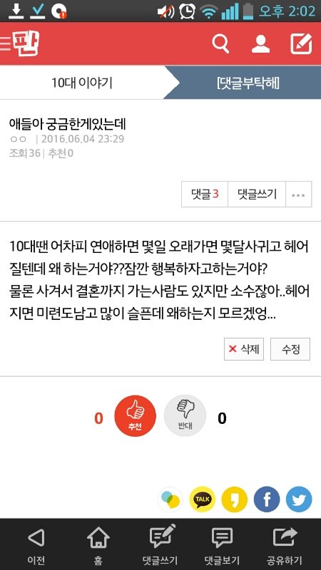 기분 저때 남친하고 깨지고 조카 오락가락했는데 다시 보니까 조카웃기네ㅋㅋ혼자 소설씀 걍 계속 그 마인드로 살다가 성인돼서 연애하지 ㅅㅂ.. 존1나 세상 비련한 여주인공인척..