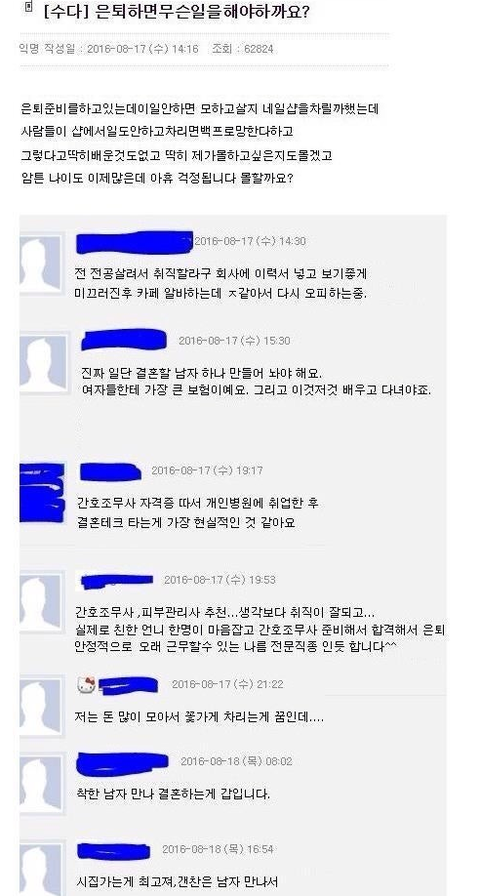 글쓴 사람은 소위 업소여자 댓글 다는 사람들도 같은 업소계통..