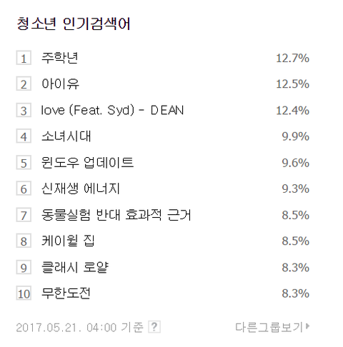 네이버 청소년 인기검색어 1위한 연습생