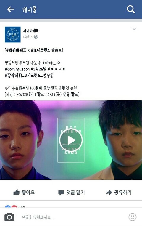 파리바게트와 김종섭,박현진 군이 콜라보한 첫 데뷔싱글이